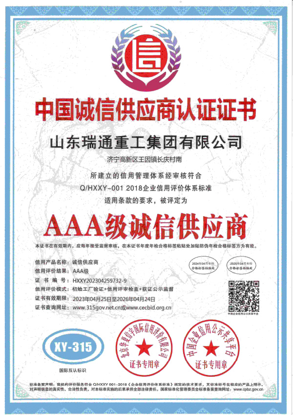 中国诚信供应商认证证书