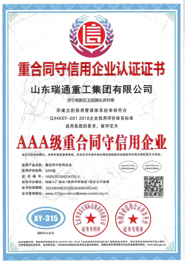 重合同守信用企业认证证书