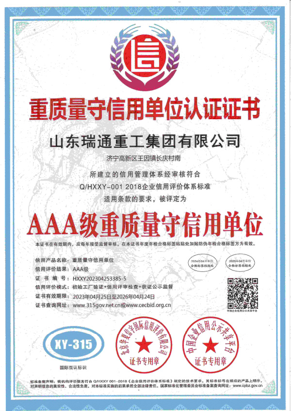 重质量守信用单位认证证书